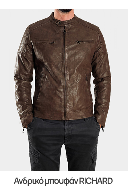Σε συνδυασμό με τις μεταλλικές λεπτομέρειες στα κουμπιά ή το φερμουάρ, ένα ανδρικό μπουφάν biker από δερματίνη, σε μαύρη ή καφέ απόχρωση θα απογειώσει τα street style outfits του Φθινοπώρου.