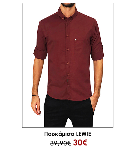 Μονόχρωμο πουκάμισοΑνδρικό πουκάμισο LEWIEΑυτή τη φορά πες όχι στις μπλούζες σου και τόλμησε να φορέσεις κάποιο πουκάμισο σε έντονο χρώμα. Το ανδρικό πουκάμισο LEWIE σε slim γραμμή , χάρης στη βαμβακερή σύνθεση του είναι η ιδανική λύση για να είσαι στυλάτος και άνετος όλες τις ώρες. Με ένα κλικ στον χώρο σας.