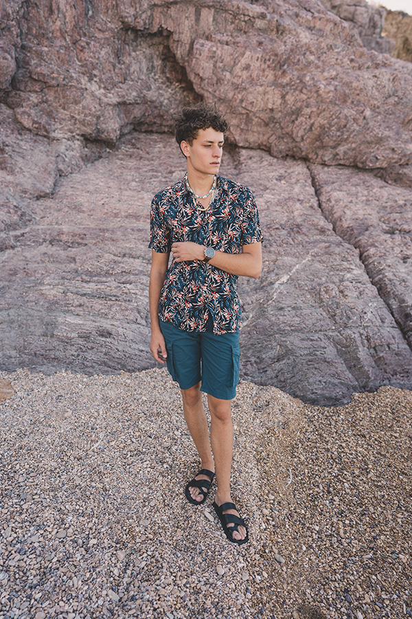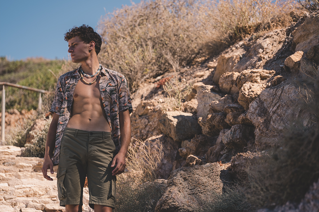 Η καρδιά του "Tropical Shoreline" είναι τα floral πουκάμισα, που φέρνουν μια αίσθηση φρεσκάδας και ζωντάνιας. Συνδυάσμένα με cargo βερμούδες ή chinos βερμούδες, ολοκληρώνουν ένα άνετο και κομψό look που είναι ιδανικό για κάθε στιγμή της ημέρας. Τα καπέλα τύπου ψαράδικο προσθέτουν μια δόση παιχνιδιάρικου στυλ, προστατεύοντάς σας παράλληλα από τον ήλιο.